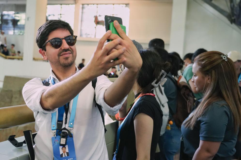怀着热切期盼,他与其他拉美和加勒比地区青年一起,随着来自世界各地的游客涌进展厅。