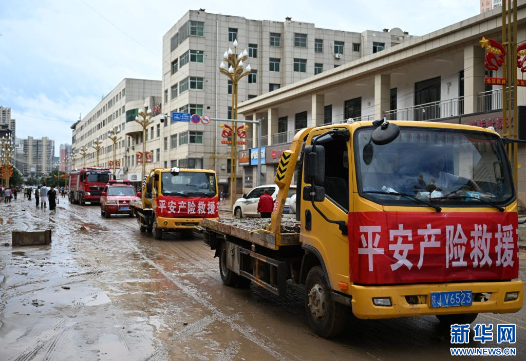 7月26日,救援人员在吴起县城忙碌。新华社记者 张博文 摄pagebreak