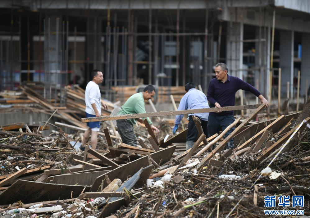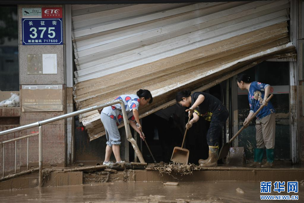 7月26日,群众在吴起县城参与灾后清理工作。新华社记者 张博文 摄pagebreak