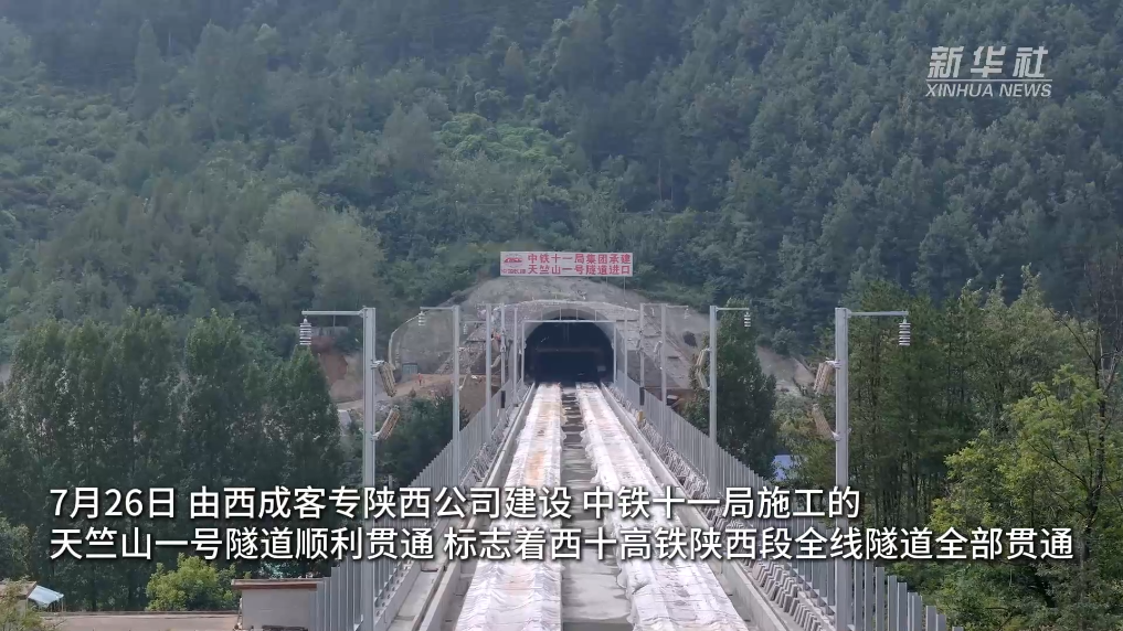7月26日,由西成客专陕西公司建设、中铁十一局施工的天竺山一号隧道顺利贯通,标志着西十高铁陕西段全线隧道全部贯通。