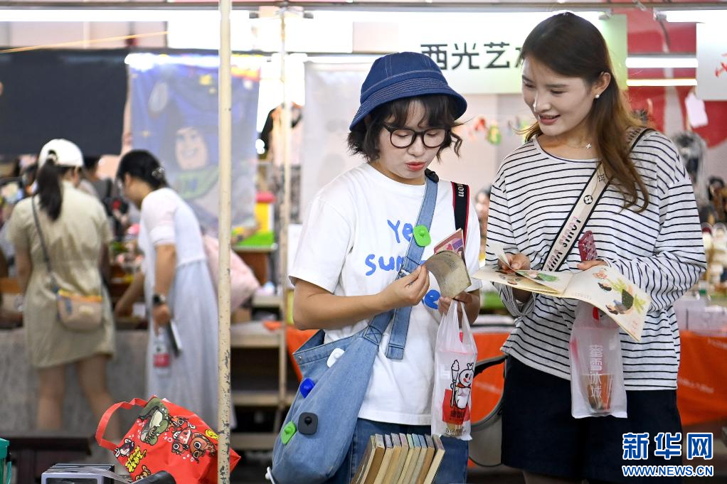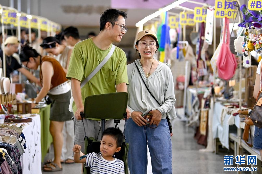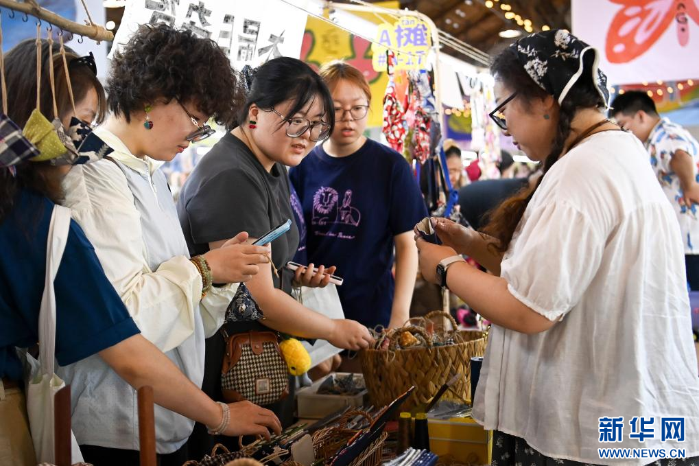 7月5日,游客在西仓市集文创公园内的“新二手市集”上选购商品。