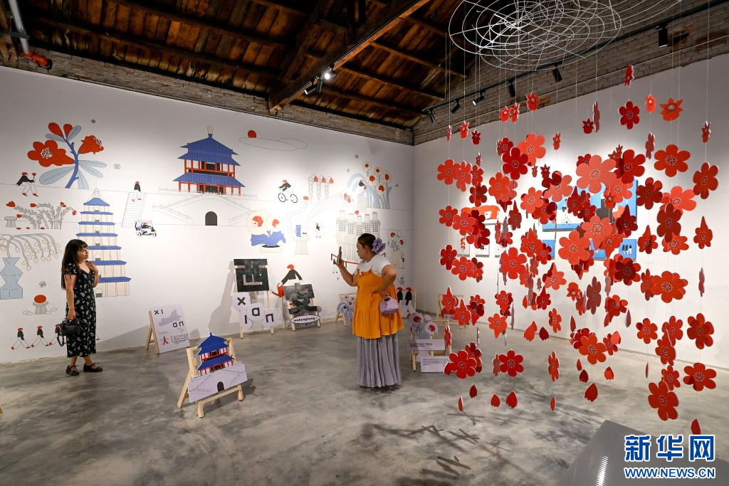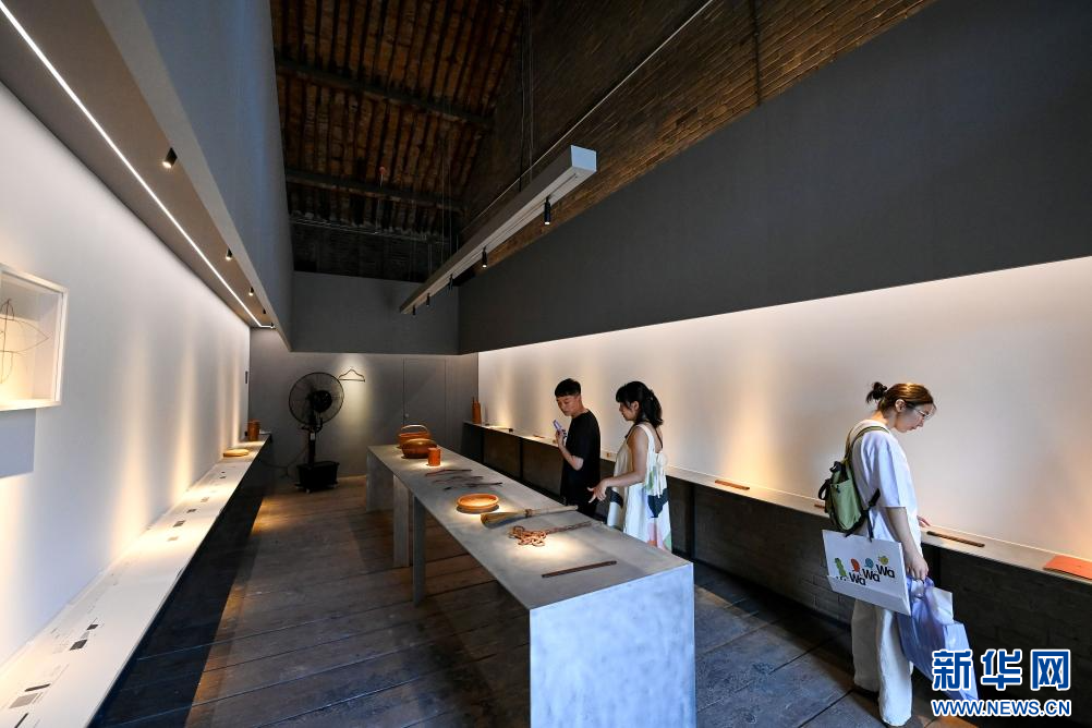 7月27日,游客在“永丰仓”旧址改造而成的西仓市集文创公园内参观展览。