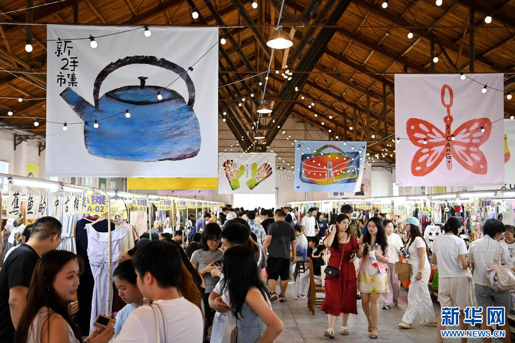 7月5日,游客在西仓市集文创公园内的“新二手市集”上参观游览。