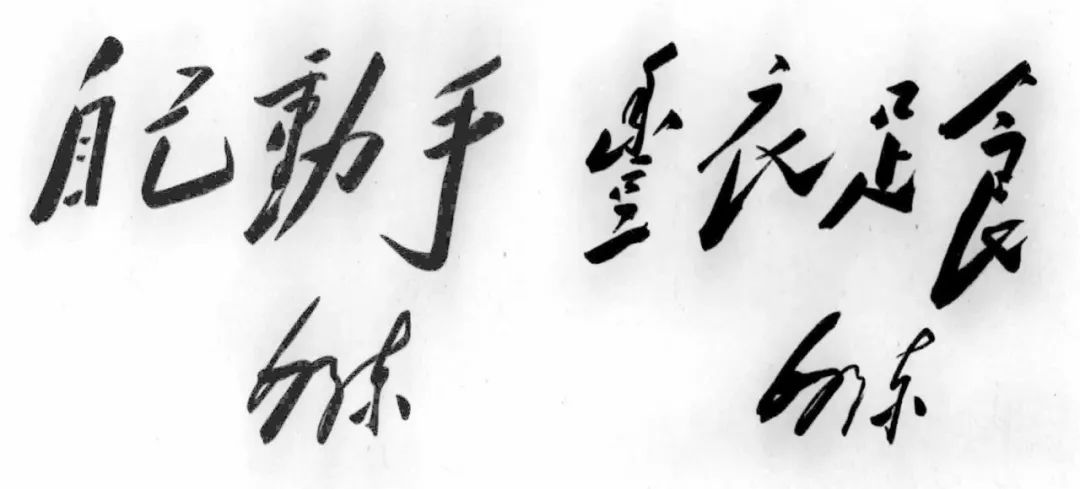 毛泽东为影片《生产与战斗结合起来》题写“自己动手”和“丰衣足食”。新华社发(资料照片)
