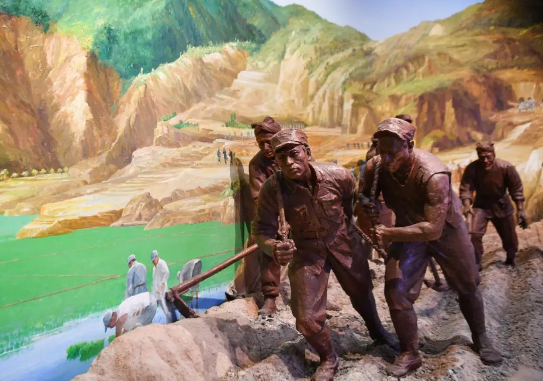 南泥湾大生产纪念馆内的雕塑作品(2021年7月22日摄)。新华社记者 张博文 摄