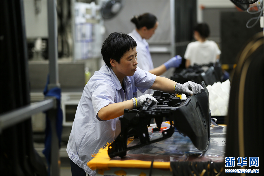 西安新泉汽车饰件有限公司工人正在装配产品。 新华网 王智超摄