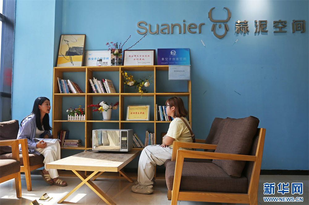 西安经开区辖区蒜泥空间入驻企业正在进行招聘工作。新华网 王智超摄pagebreak