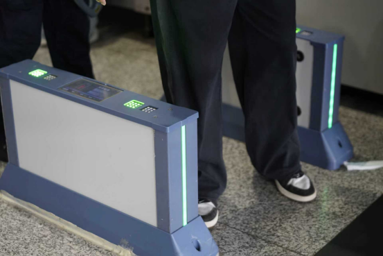 “现在安检真是又快又方便!”准备过安检的贺女士,将双肩包放入安检机。自己站在了新型腿部金属探测仪的检测区,系统便开始自动扫描,3秒钟后设备亮起绿灯,全程无需安检员弯腰检查。