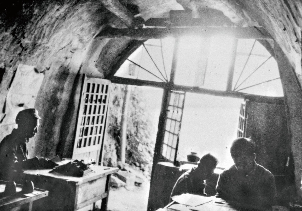 延安时期新华社编辑在窑洞内工作。1937年1月,党中央迁驻延安,这座城市成为敌后抗战指挥中心。新华社发
