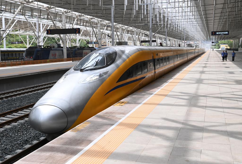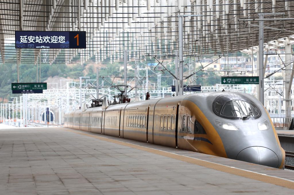9月11日,西延高铁联调联试综合检测列车驶入延安站。新华社发(祁小军 摄)
