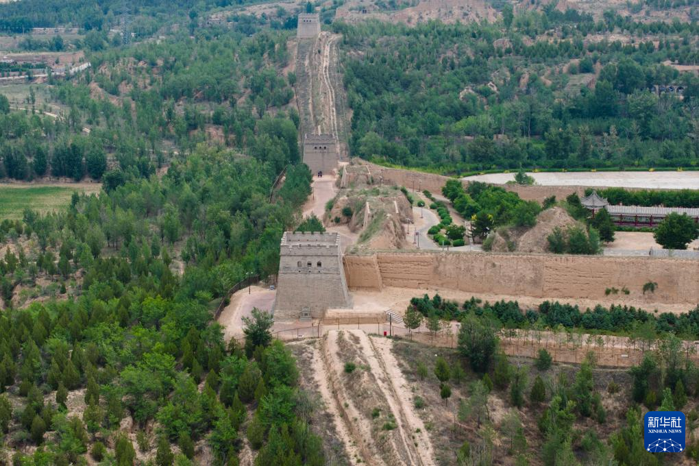 榆林镇北台附近的长城生态防护林带(2024年6月6日摄,无人机照片)。新华社记者 邵瑞 摄