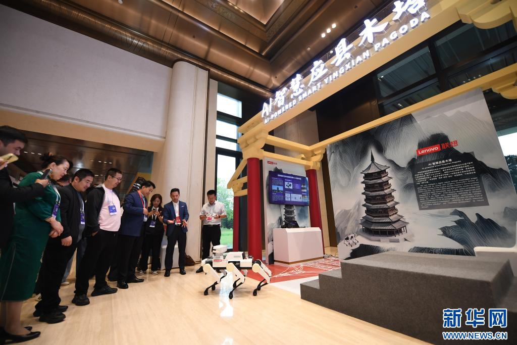 9月17日,与会嘉宾在论坛的文化遗产数字化精品项目展上了解AI智慧应县木塔数字化保护项目。