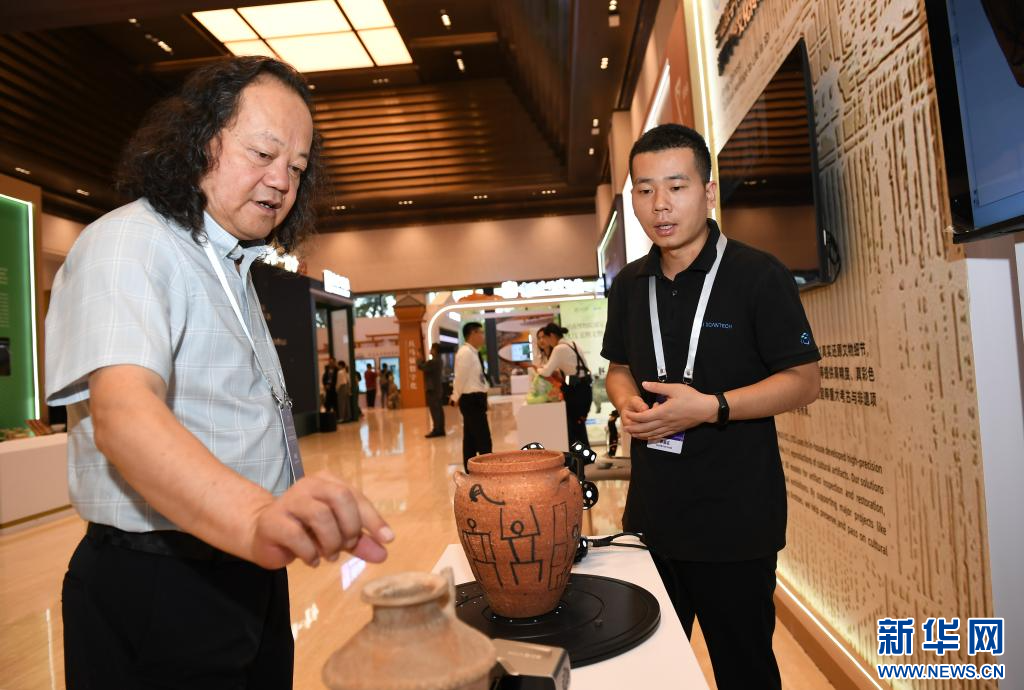 9月17日,与会嘉宾在论坛的文化遗产数字化精品项目展上了解思看科技高精度激光三维扫描技术。
