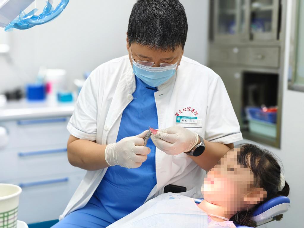 空军军医大学口腔医院口腔预防科主任医师轩昆在诊疗中。新华社发