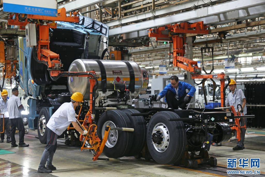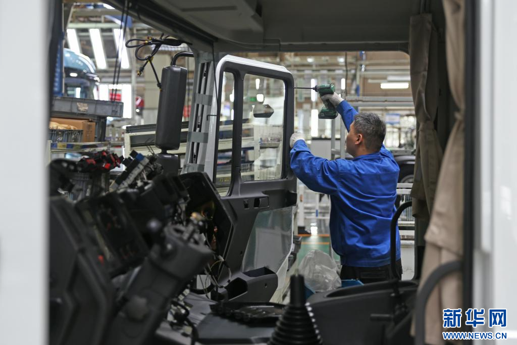 在陕西汽车控股集团有限公司汽车总装配车间,工人进行装配生产工作。新华网 王智超摄pagebreak