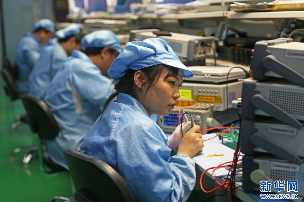 在陕西中科天地航空模块有限公司,员工正在进行电源模块的调试工作。新华网 王智超摄pagebreak