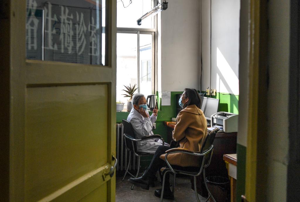 路生梅在佳县人民医院坐诊(2022年11月16日摄)。新华社记者 邹竞一 摄