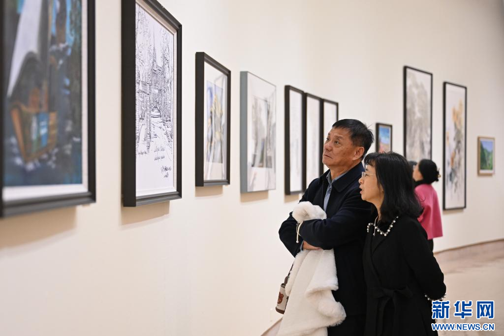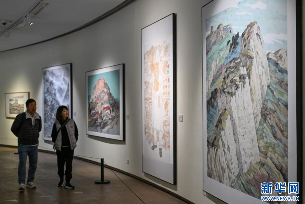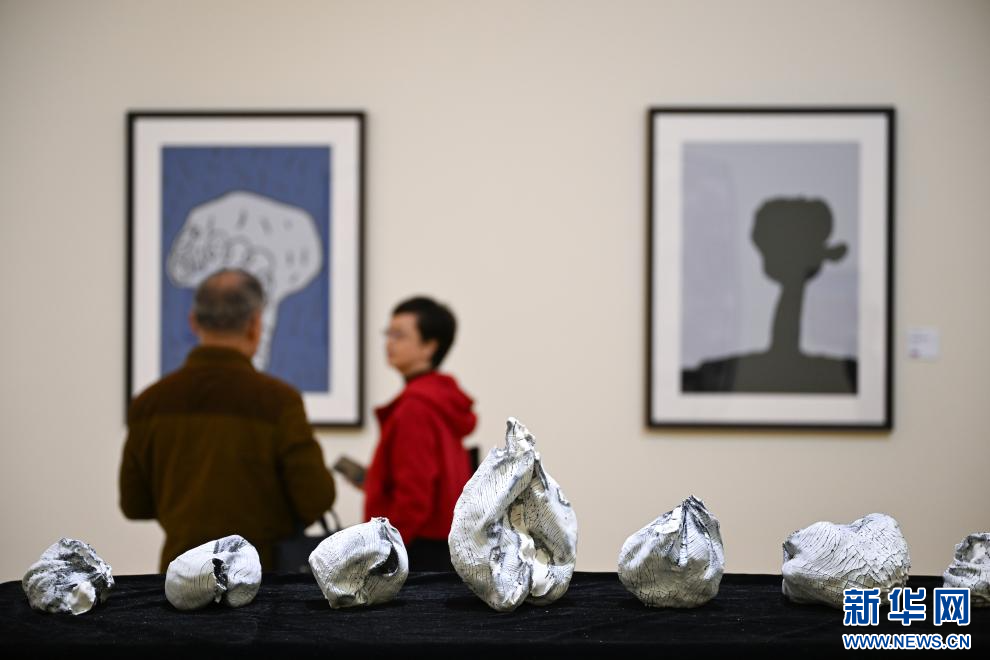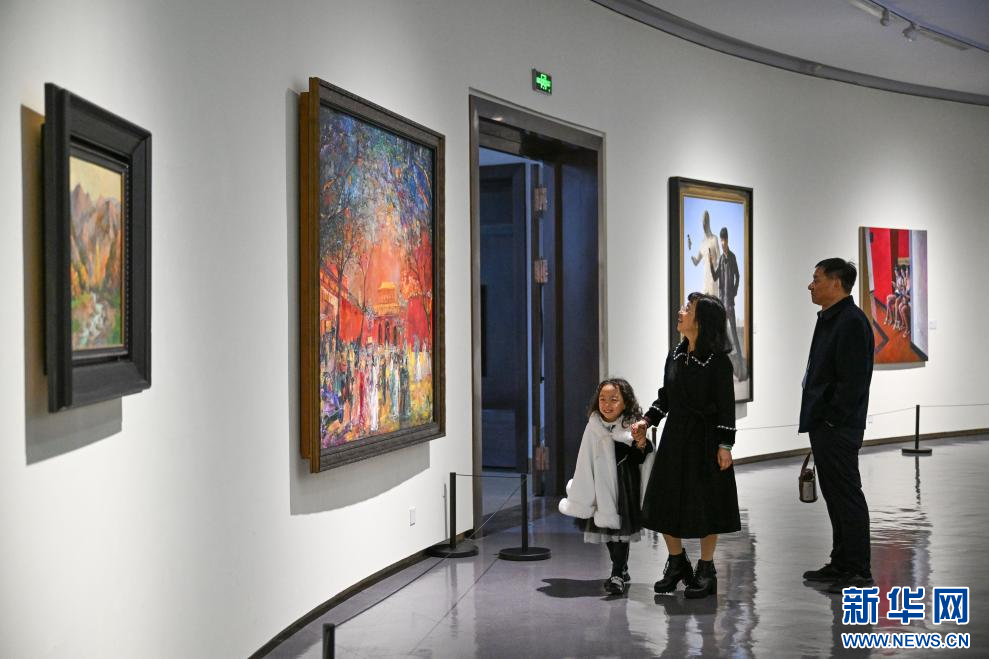 10月19日,参观者在陕西省美术博物馆欣赏艺术作品。