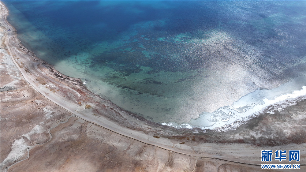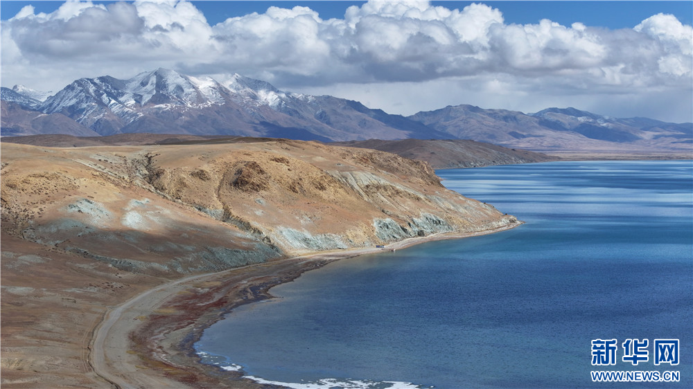 空中俯瞰阿里地区普兰县的拉昂错。新华网发