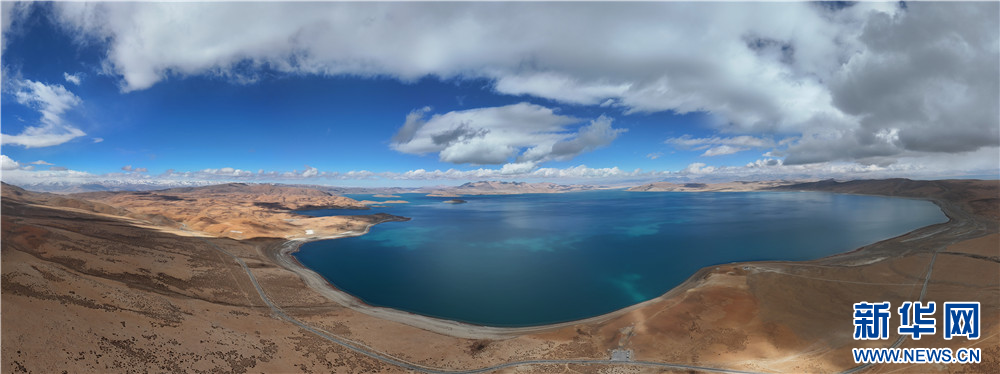 空中俯瞰阿里地区普兰县的玛旁雍错。新华网发