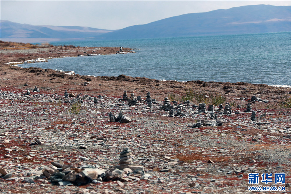 阿里地区普兰县玛旁雍错岸边的玛尼堆。新华网发