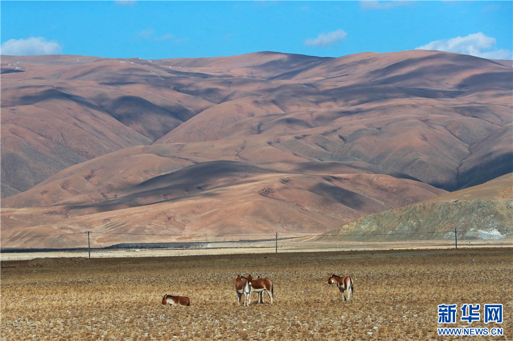219国道阿里地区普兰县上的藏野驴。新华网发
