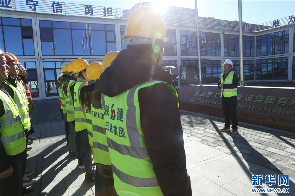 于卫刚在噶尔县一处公共租赁住房项目部主持建设安全例会。新华网 王智超摄pagebreak