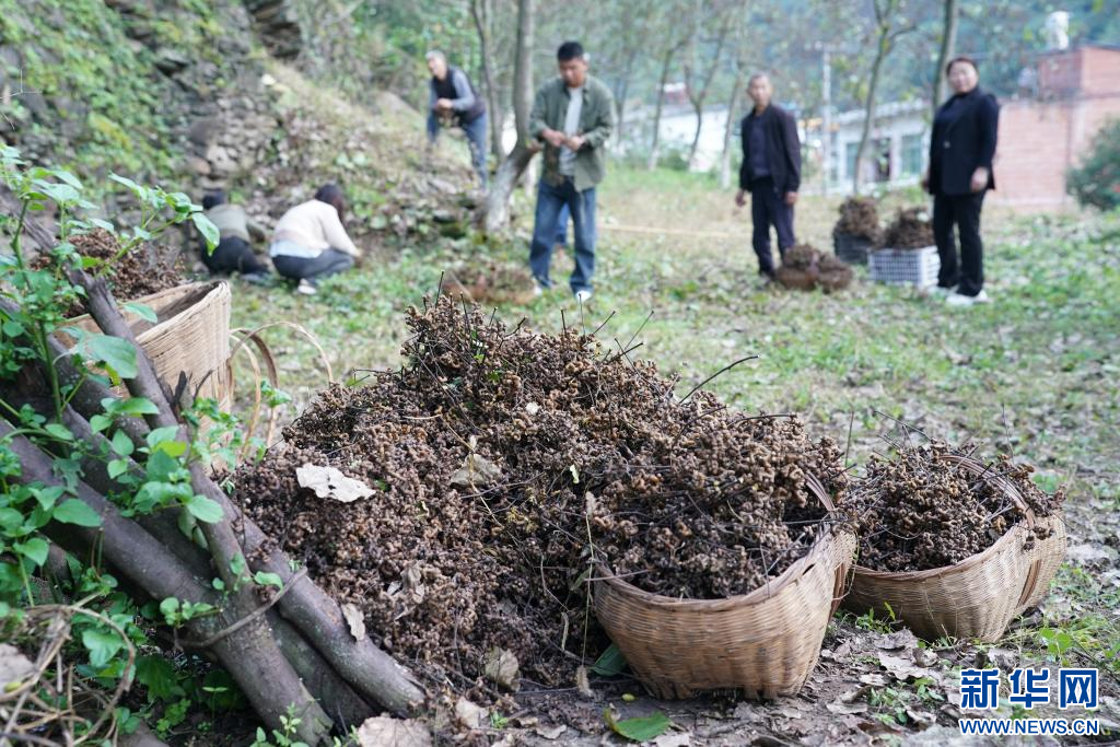 10月28日,果农在旬阳市神河镇王义沟社区拐枣种植基地采收拐枣。