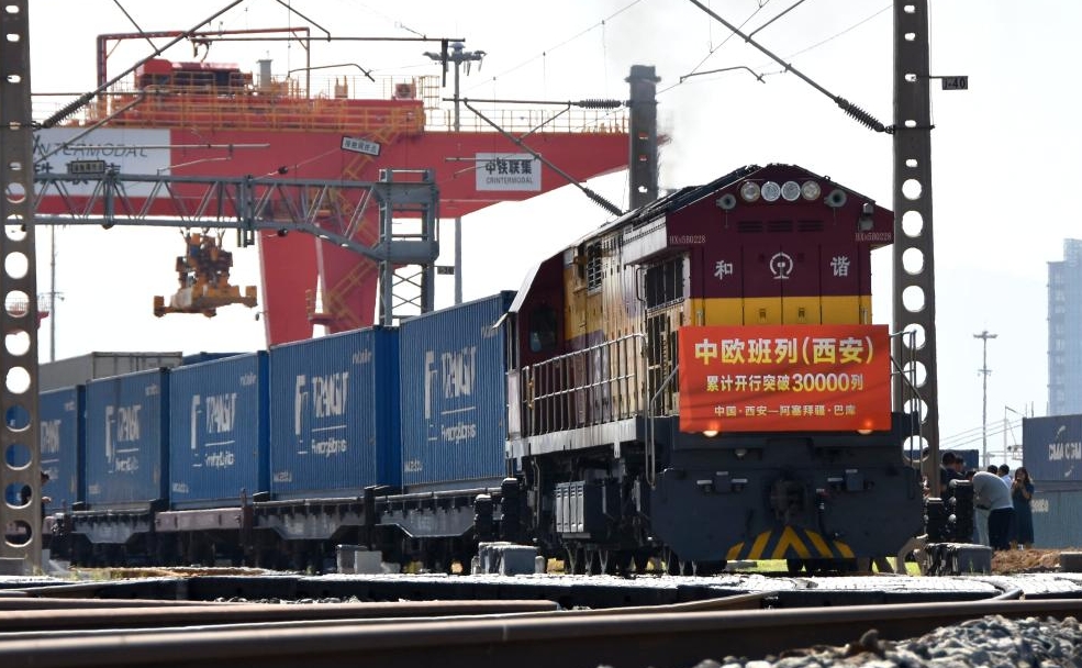 當(dāng)日上午,滿載著55個(gè)集裝箱光伏組件的X9043次中歐班列從西安國(guó)際港站駛出,開(kāi)往阿塞拜疆巴庫(kù),標(biāo)志著中歐班列(西安)自2013年開(kāi)行首列以來(lái)累計(jì)開(kāi)行突破30000列,開(kāi)行總量超過(guò)全國(guó)中歐班列累計(jì)開(kāi)行總量的四分之一。