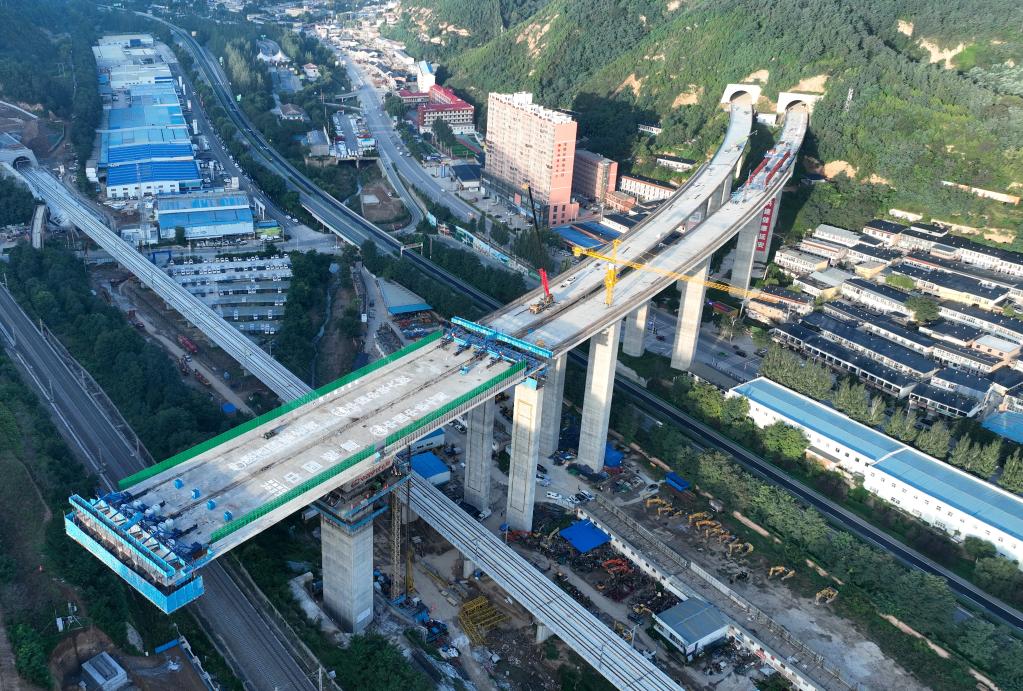 新華社照片,延安(陜西),2025年9月9日 9月9日,位于陜西延安的南泥灣機(jī)場(chǎng)大橋成功轉(zhuǎn)體實(shí)現(xiàn)對(duì)接。